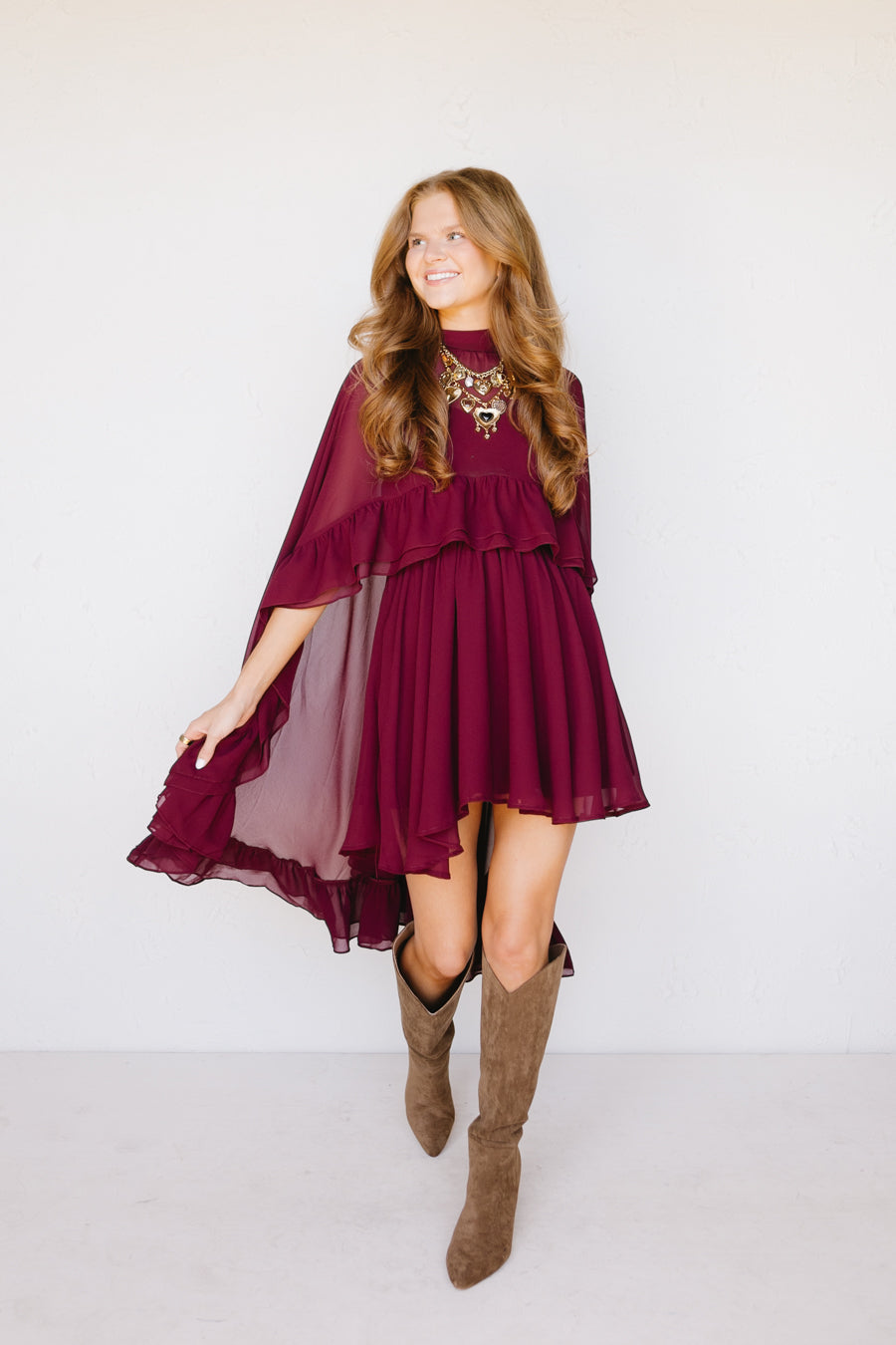 Bottom layer: spaghetti strap mini dress, fully lined with ruffle hem